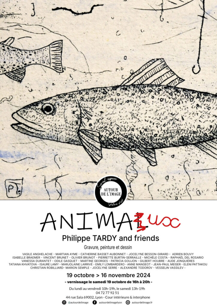 19.10.2024 — 16.11.2024 — Exposition «Animal», organisée par la Galerie «Autour de l’Image». Je prends part a l’exposition avec les artistes — amis de Philippe Tardy, et chaque artiste presents une gravure. Vernissage le 19.10 à partir de 16h00. Adresse : 44 rue Sala, 69002 Lyon — Cour intérieure & interphone.